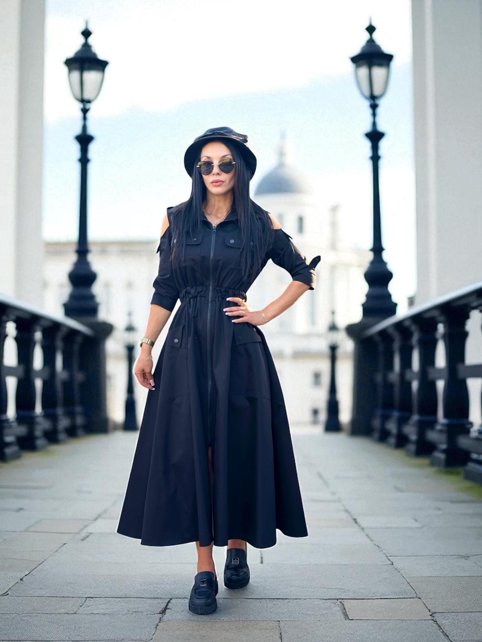 Discover timeless elegance with this Black A-Line Maxi Dress, featuring chic shoulder cut-outs, an adjustable belted waist, and a flowing flared hemline. Perfect for casual outings, evening events, or travel style, this versatile dress transitions effortlessly from day to night. Pair with sneakers for a modern streetwear vibe or with heels for sophisticated glamour. Crafted from lightweight, breathable fabric, it ensures comfort without compromising style.