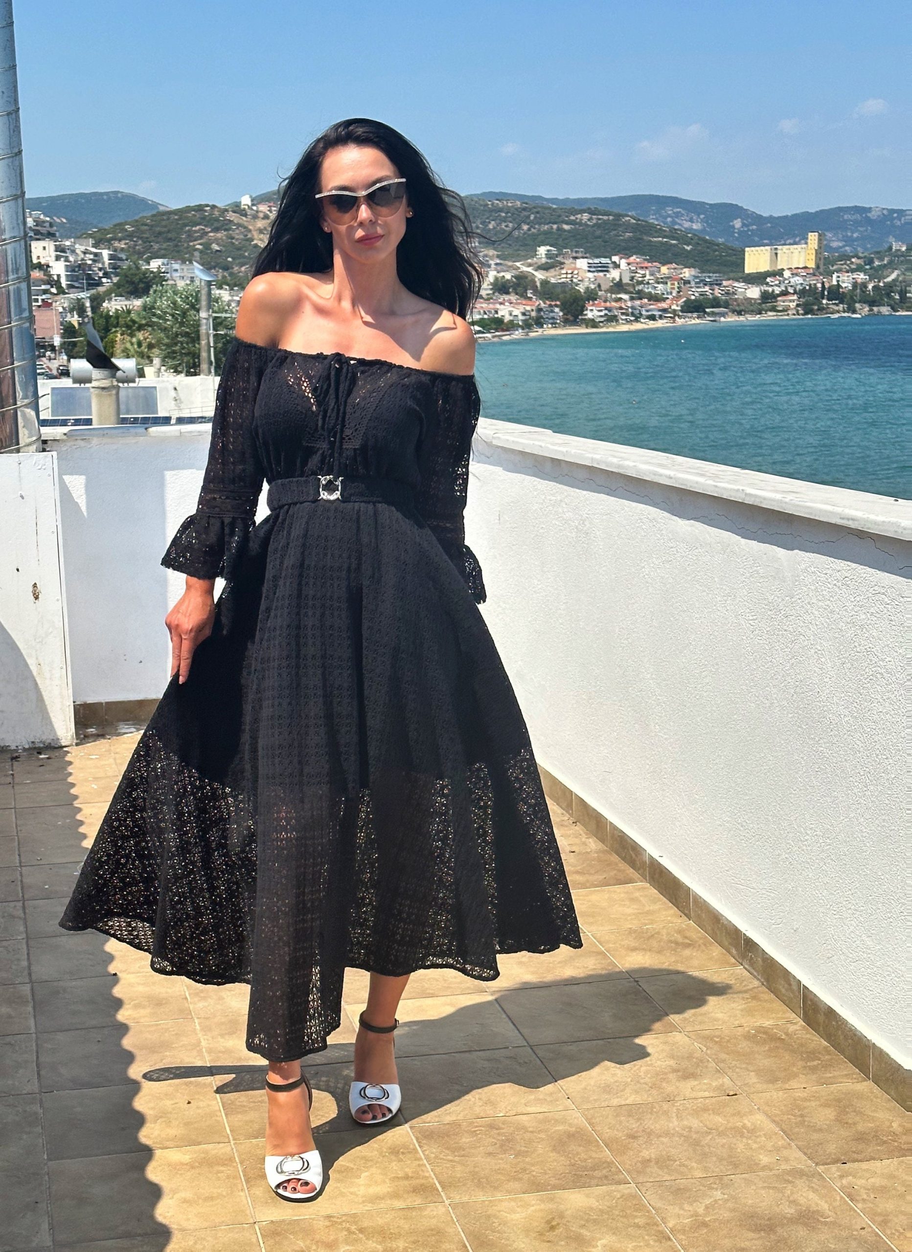 Black off-shoulder maxi dress, Lace formal dress, Sheer long sleeve gown, Bohemian evening dress, Elegant summer gown, Romantic lace dress, Party dress black, Gothic maxi dress, Handmade fashion, Women s special occasion dres