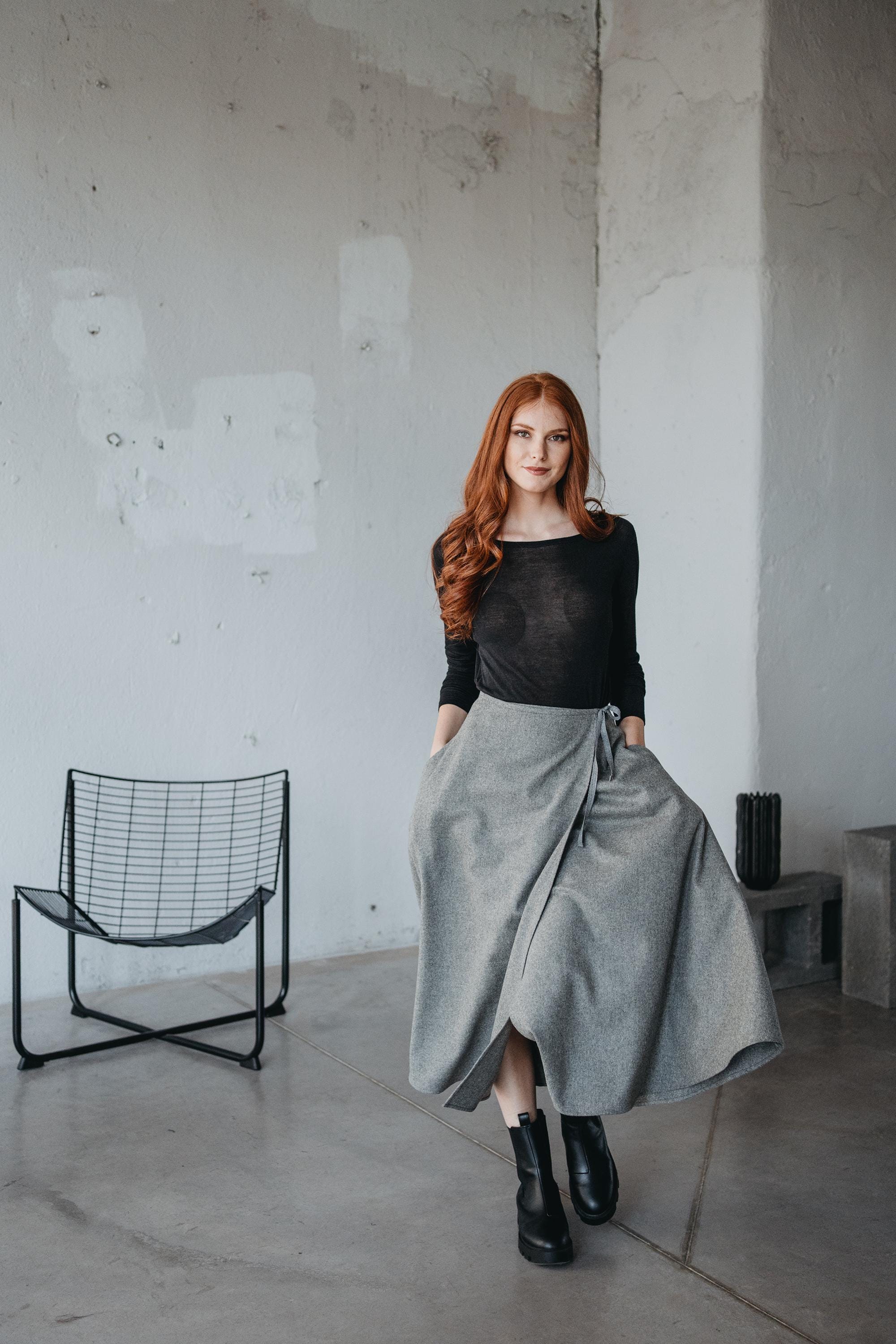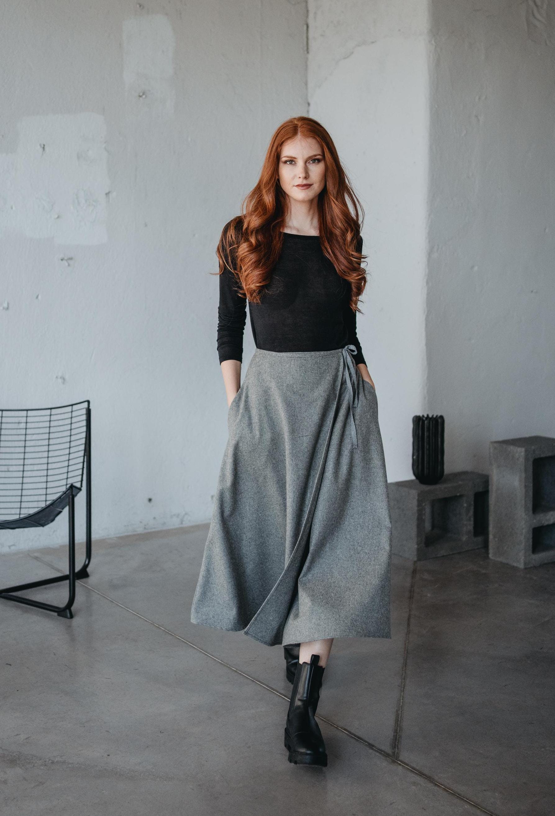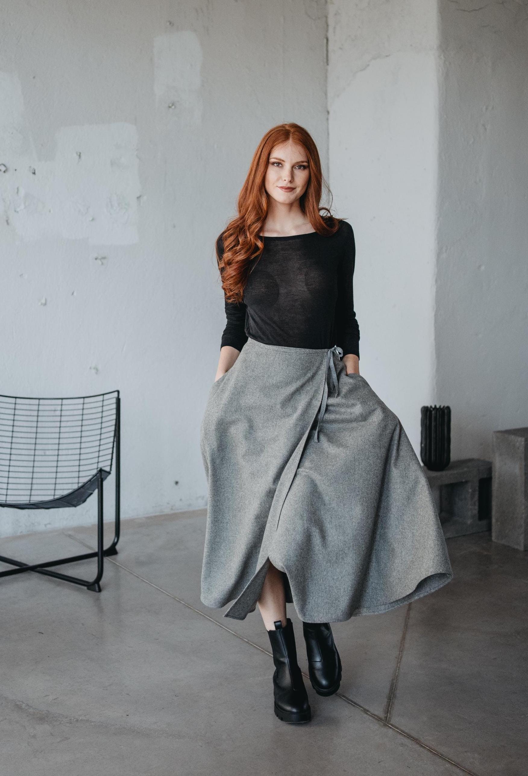 Gray Wool Wrap Skirt With Pockets: Boho Winter