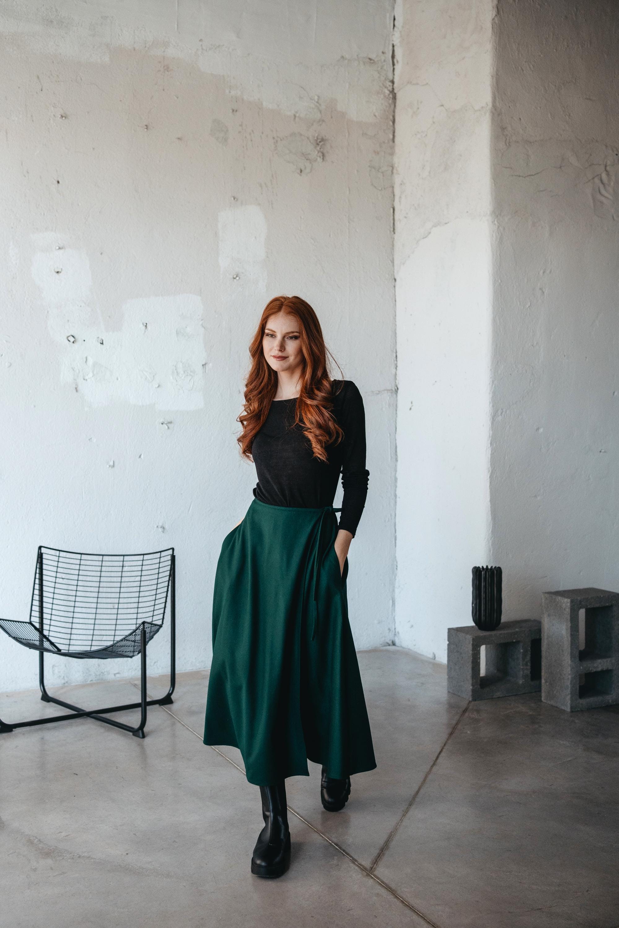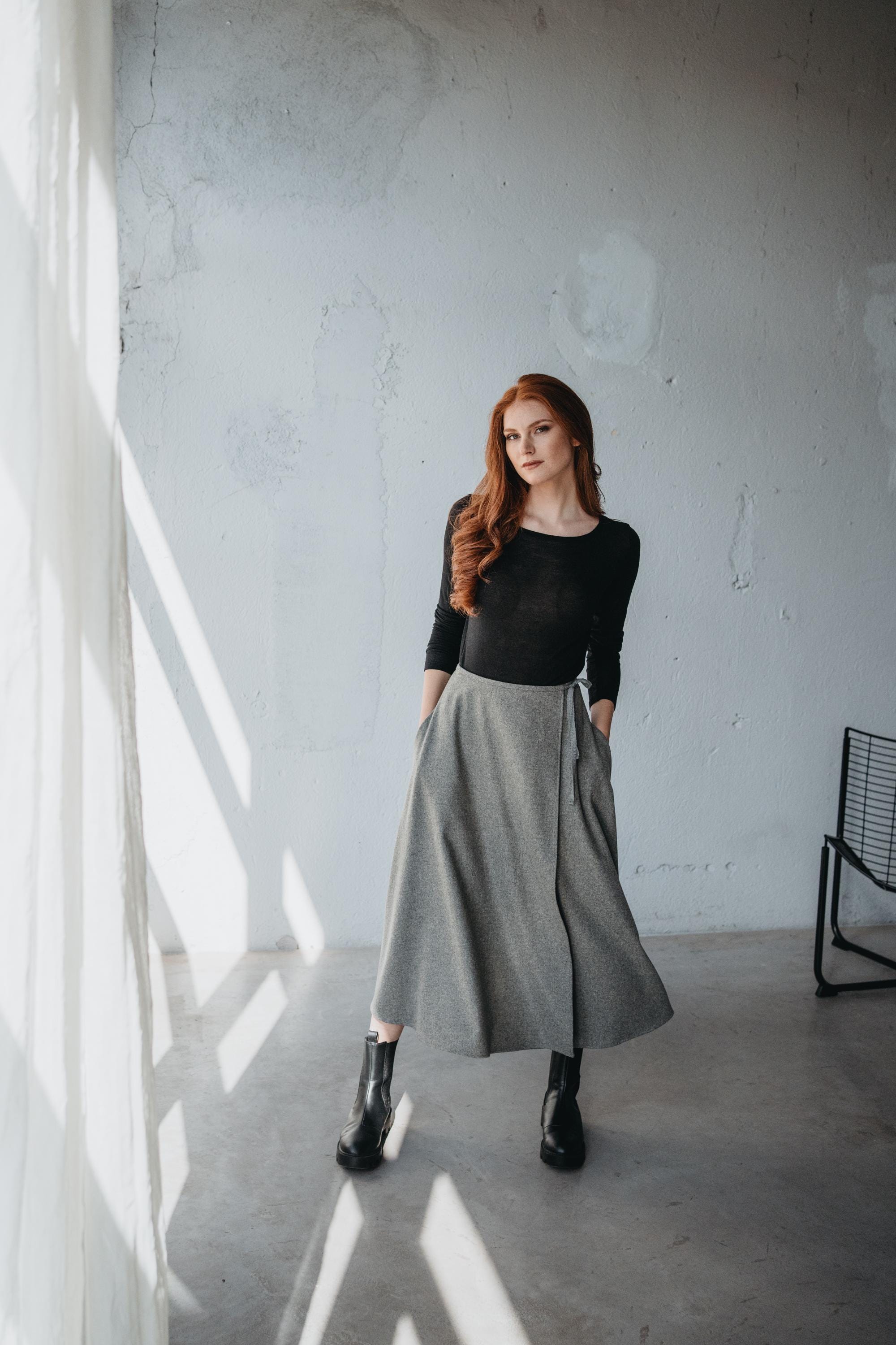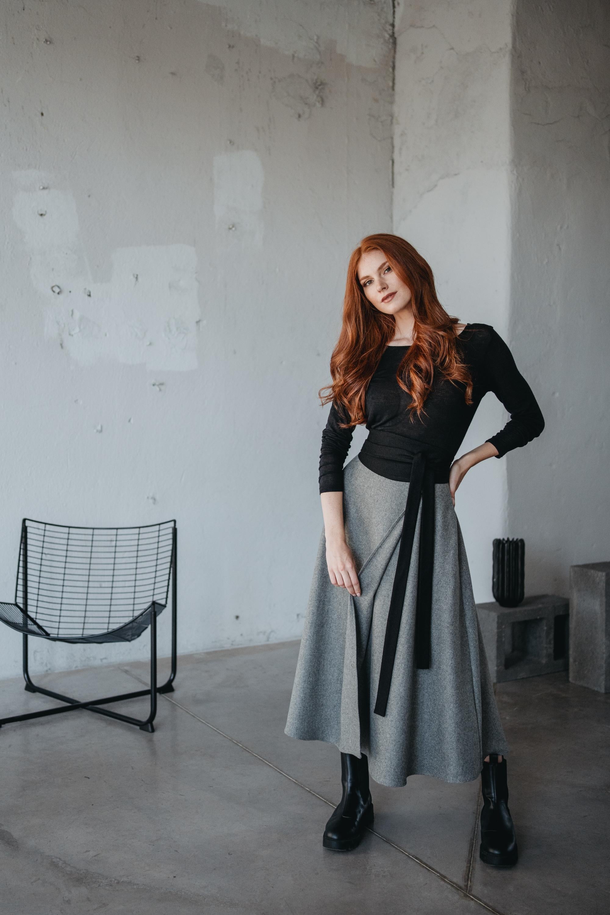 Gray Wool Wrap Skirt With Pockets: Boho Winter