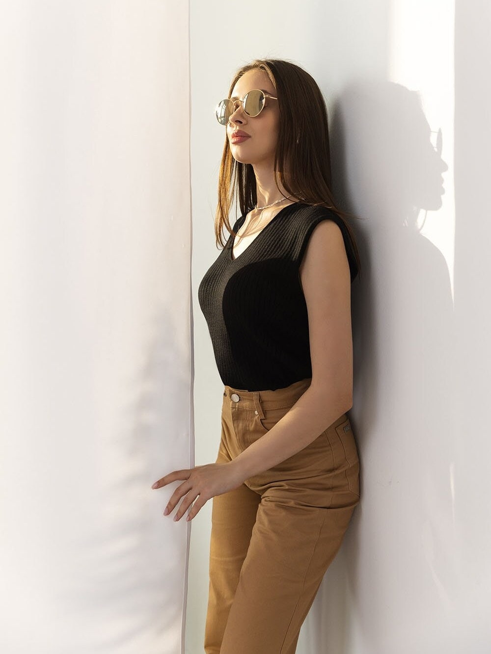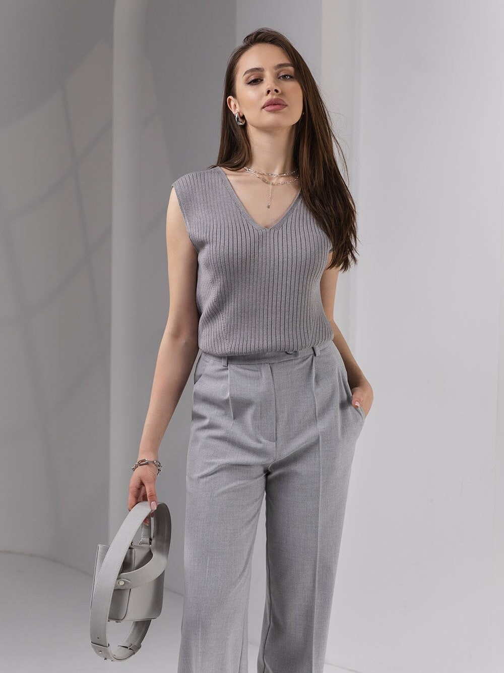 Knits Top V Neck Tank Wide Straps Loose