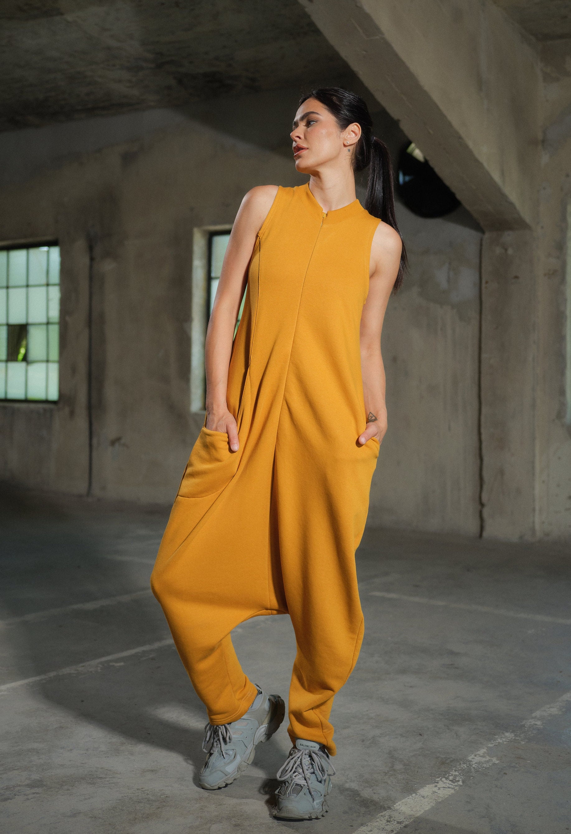 Organic Cotton Drop Crotch Jumpsuit: Avant Garde Utility