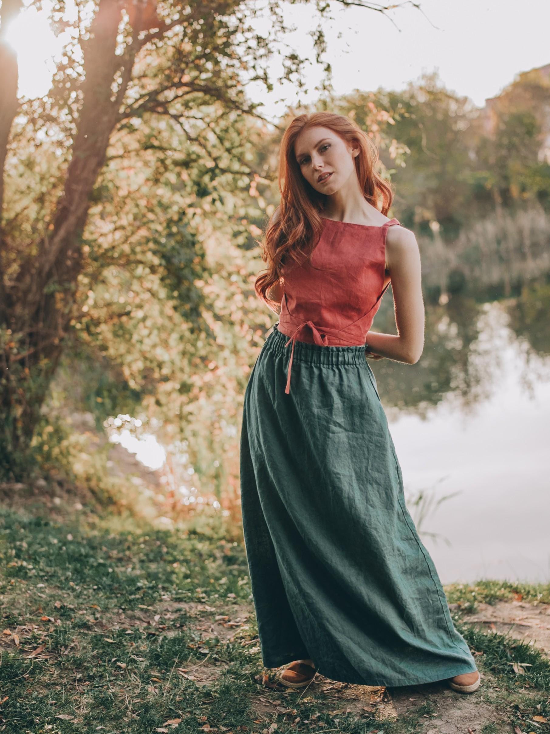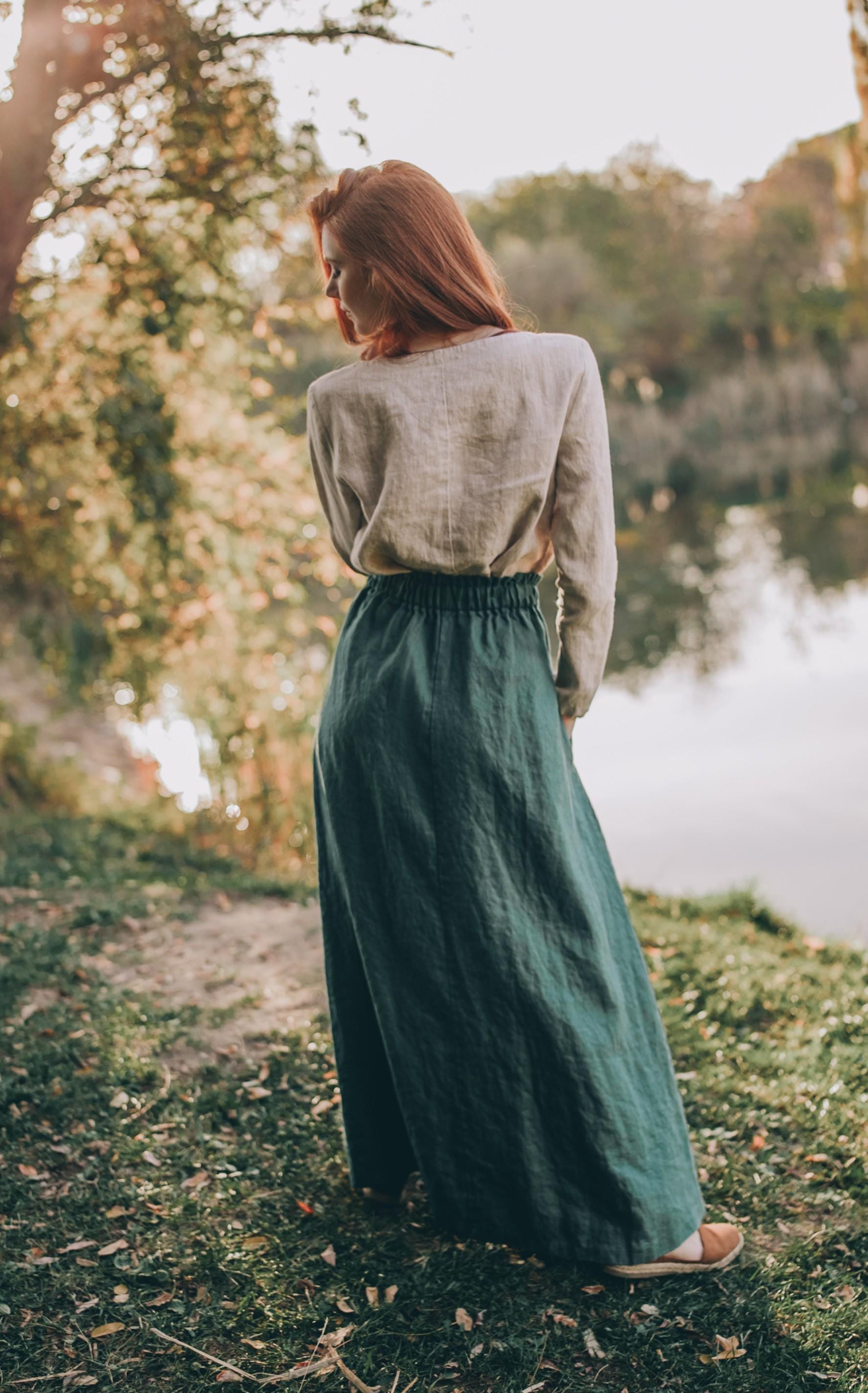 Effortless maxi skirt that is made of 100% pure linen with an elastic waist. This classic maxi skirt looks feminine while being super comfy and breezy. Made from natural washed and soft heavyweight linen that has a thick texture and is perfect for the chilly weather.