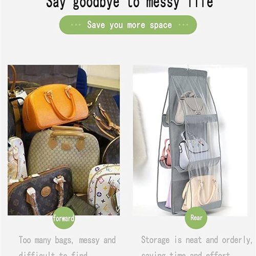 - There is a large-capacity storage bag with its 3-layer, 6-pocket double-sided design that can protect your handbag well, thanks to its waterproof, dustproof, and moisture-resistant. and it is transparent and visible, so it is easy for you to find the contents of the bag quickly.